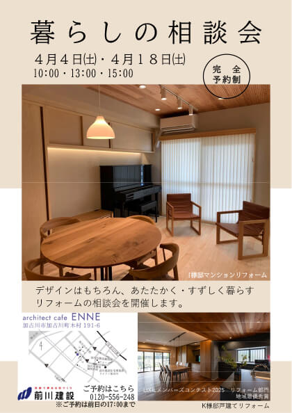 デザインはもちろん、あたたかく・すずしく暮らすリフォームの相談会を開催します。